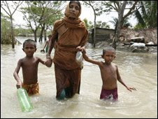 A large-scale military and civilian relief operation is under way in Bangladesh and West Bengal, with stranded communities in both countries complaining that aid has been slow to arrive. "There's an acute shortage of drinking water and as a result diarrhoea has broken out," Lutsur Rahman Khan, medical chief of Bangladesh's Khulna district, told the AFP news agency. "The situation is bad and it's a race against time to prevent a full-scale epidemic from breaking out." He said that several levees had been washed away by the cyclone, particularly in areas adjoining the Indian border, which meant that some areas are repeat-flooded every time there is a high tide. Matters had been made worse because salty water could not be treated with purification tablets while water-treatment facilities brought in by the army were also unable to purify sea water, he said. The contamination of surface water by the tidal surges has also prompted fears that crops over the next year will be damaged in areas of subsistence agriculture. The impact of the storm is worst in the Sundarbans delta - which straddles both Bangladesh and West Bengal - and is famous for its mangrove forests and rare Royal Bengal tigers. The damage to the mangrove forest has been considerable and environmentalists fear that many tigers may have been washed away by the tidal surges.